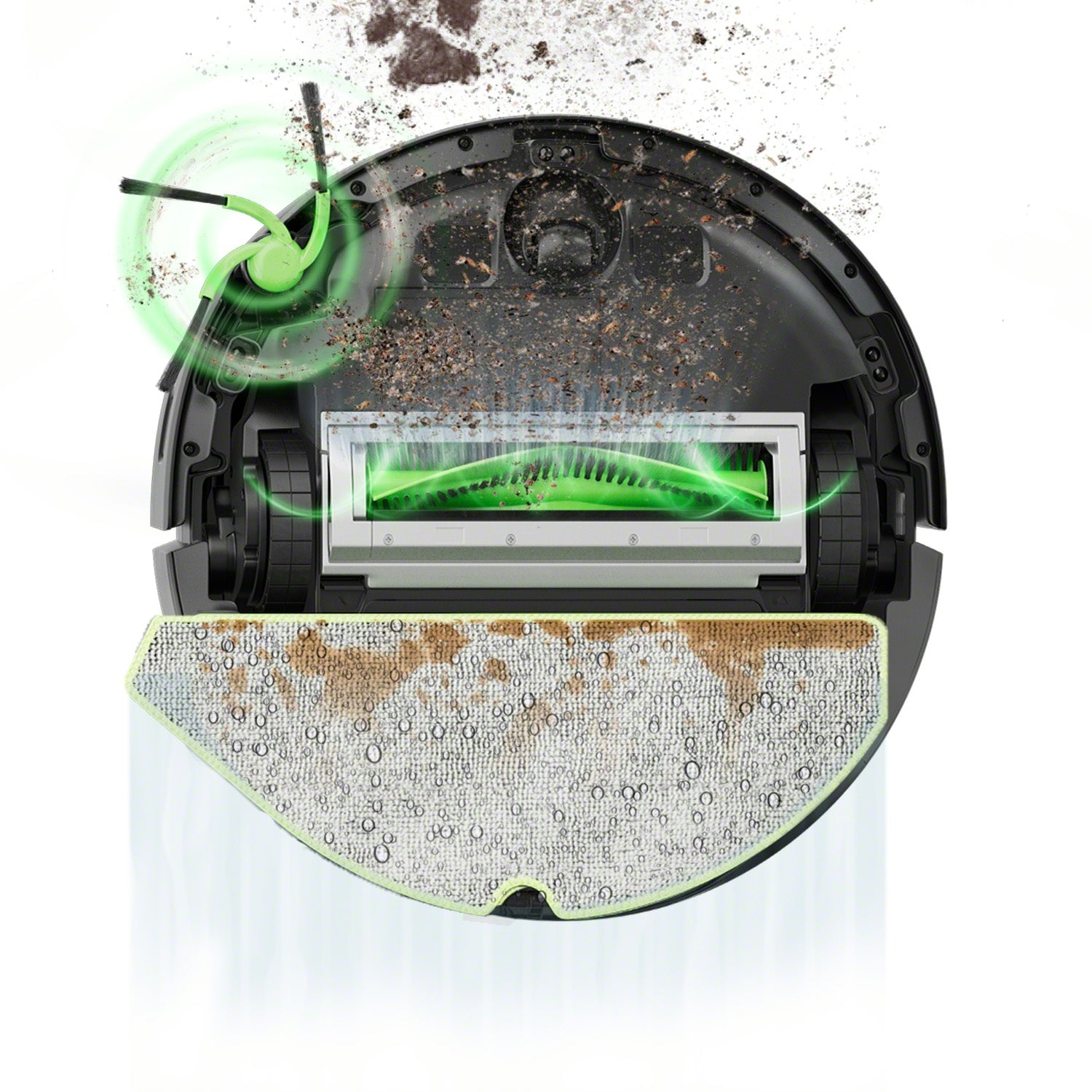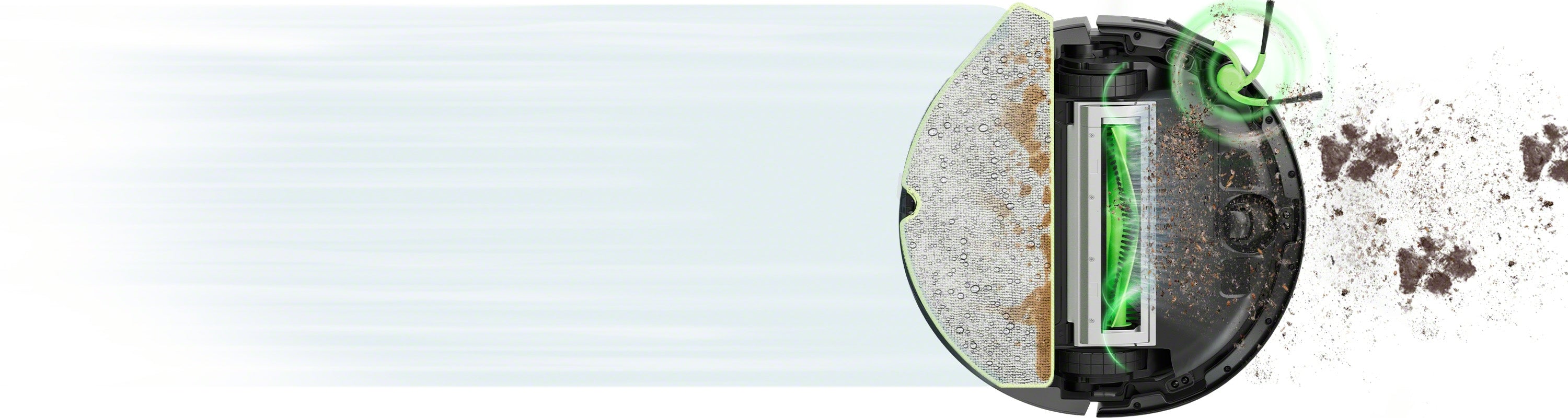 Møt den NYE Roomba® 115Combo-roboten med forlengbar børste og mopp som rengjør i hjørner der støvet gjemmer seg.